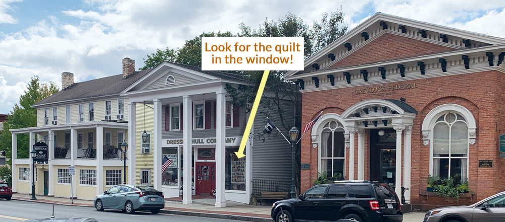 Follow Rt 20 West toward Main St. of Lee... we are on the left in the Dresser Hull Company building, next to the Morgan House restaurant. Look for the Quilt in the window!